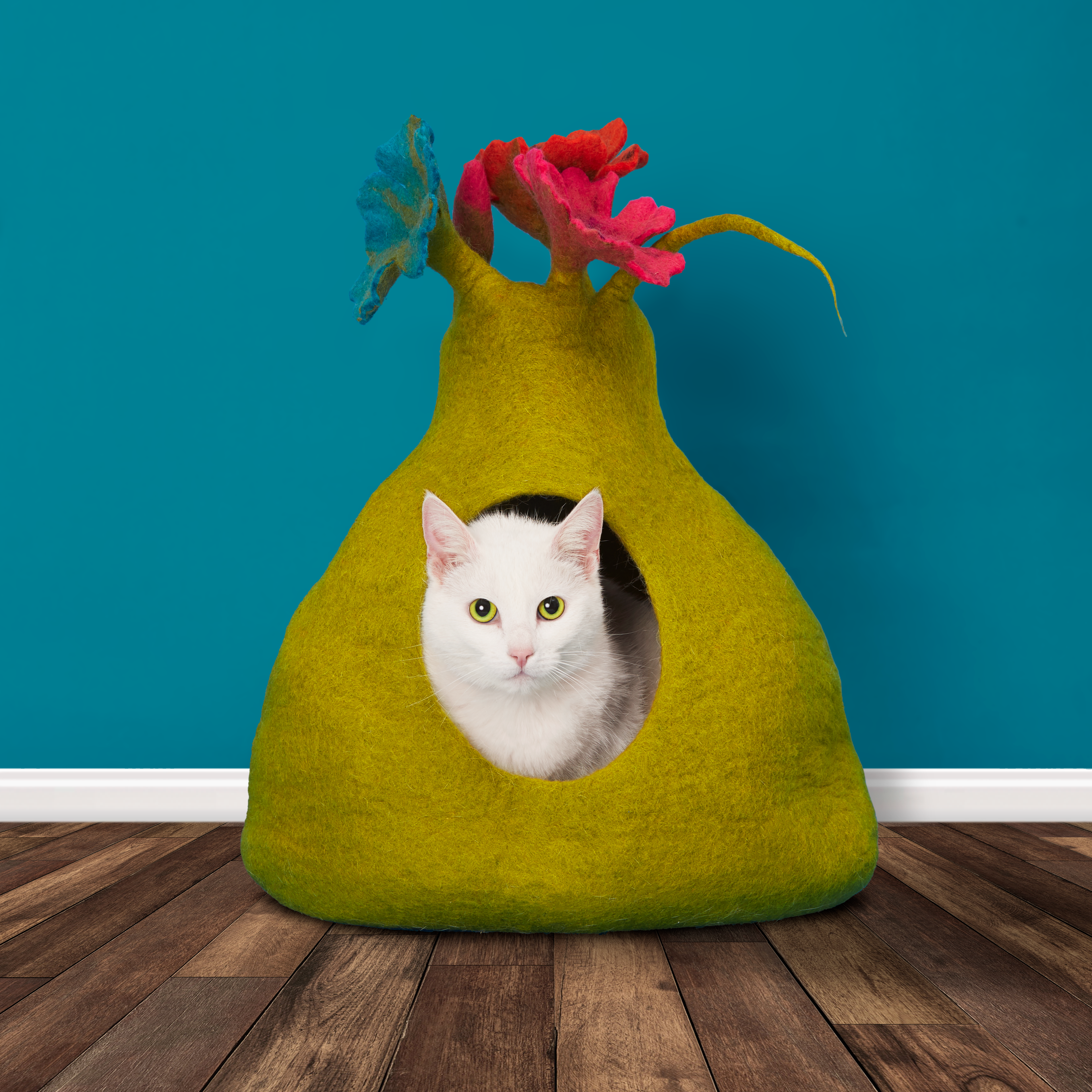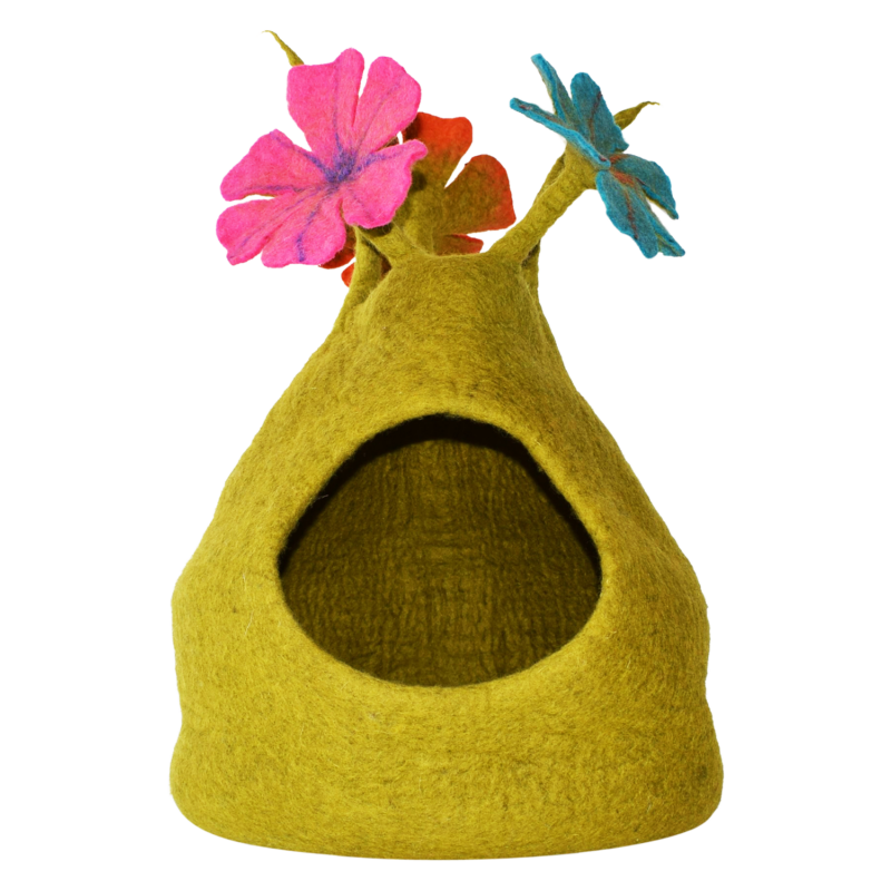 De Grot Boeket is meer dan zomaar een kattenmand; het is een veilige haven voor uw kat, gemaakt van 100% natuurlijke wol. Deze overdekte kattenmand, met zijn aantrekkelijke groene kleur en bloemige design, biedt uw kat niet alleen een knusse plek om te slapen, maar is ook een stijlvolle toevoeging aan uw interieur. Kenmerken 100% Natuurlijke Wol: Gemaakt van de hoogste kwaliteit wol, biedt deze mand ultiem comfort en warmte voor uw kat. Veilige en afgesloten ruimte: De overdekte structuur van de grot zorgt voor een gevoel van veiligheid en geborgenheid, perfect voor katten die graag een eigen plekje hebben. Uniek en stijlvol design: De groene kleur en het subtiele bloemige patroon geven deze kattenmand een natuurlijke en rustgevende uitstraling. Duurzaam en onderhoudsvriendelijk: De wol is niet alleen zacht en comfortabel, maar ook sterk en gemakkelijk schoon te houden. De Grot Boeket is een ideale keuze voor katteneigenaren die op zoek zijn naar een kwalitatief hoogwaardige, comfortabele en stijlvolle slaapplaats voor hun huisdier. Het biedt uw kat een eigen kleine oase van rust, terwijl het tegelijkertijd een elegante toevoeging is aan uw huis. Info: -100% wol – Kleur: Groen