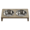 Elegant en duurzaam: De combinatie van de moderne voerbakken en de houten standaard maakt deze set zowel stijlvol als stevig.