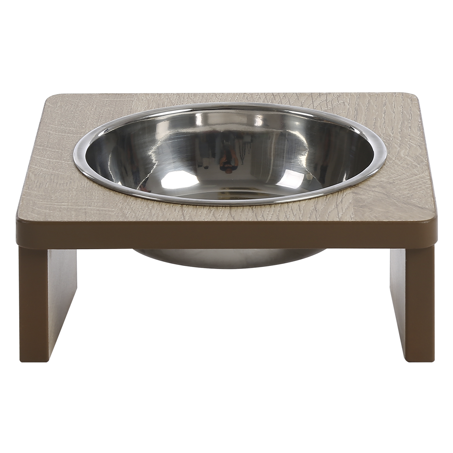 Verhoogde eetpositie: De houten standaard verhoogt de voerbak tot een comfortabele eethoogte, wat bijdraagt aan een betere houding tijdens het eten.